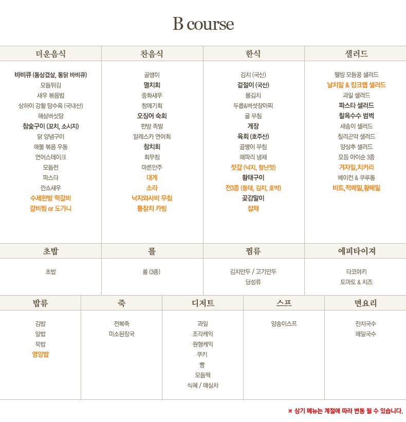 웨딩 메뉴